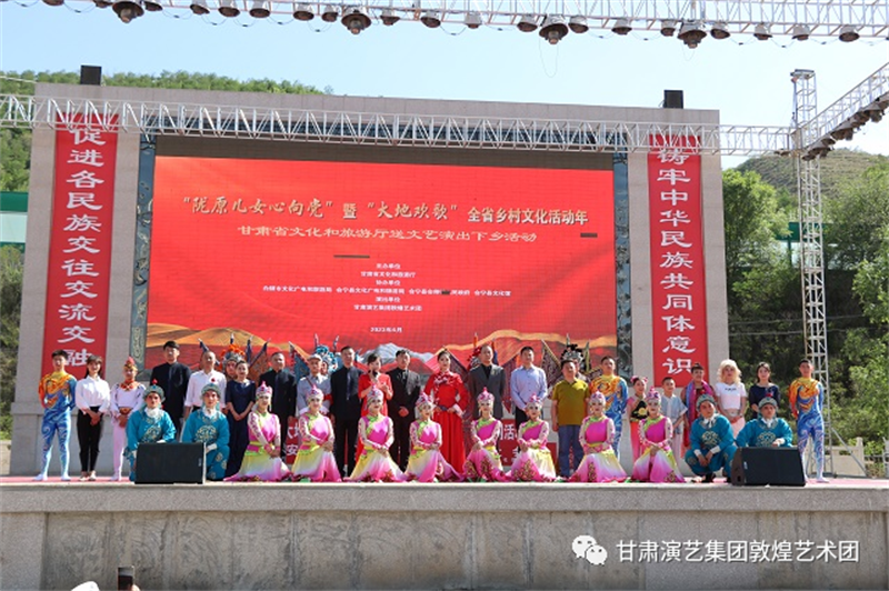 6月21日,由省文旅廳組織,甘肅演藝集團敦煌藝術團具體實施,為白銀市會寧縣會師鎮(zhèn)鐘鼓樓大型易地扶貧搬遷安置區(qū)人民群眾,送去了一場以“隴原兒女心向黨”暨“大地歡歌”全省鄉(xiāng)村活動年為主題的文藝演出。