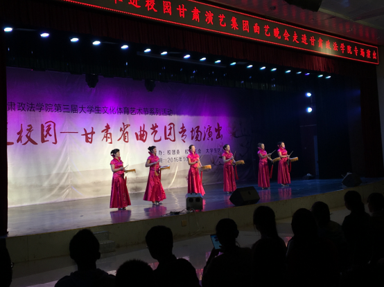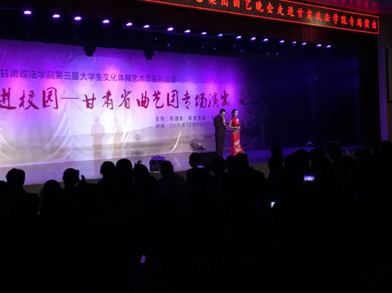 為貫徹落實(shí)甘肅演藝集團(tuán)“高雅藝術(shù)進(jìn)校園”活動,加強(qiáng)學(xué)生的課外文化活動,陶冶學(xué)生的情操,弘揚(yáng)甘肅省曲藝文化。甘肅省曲藝團(tuán)于2016年10月19日晚在甘肅政法學(xué)院舉行了曲藝晚會專場演出。