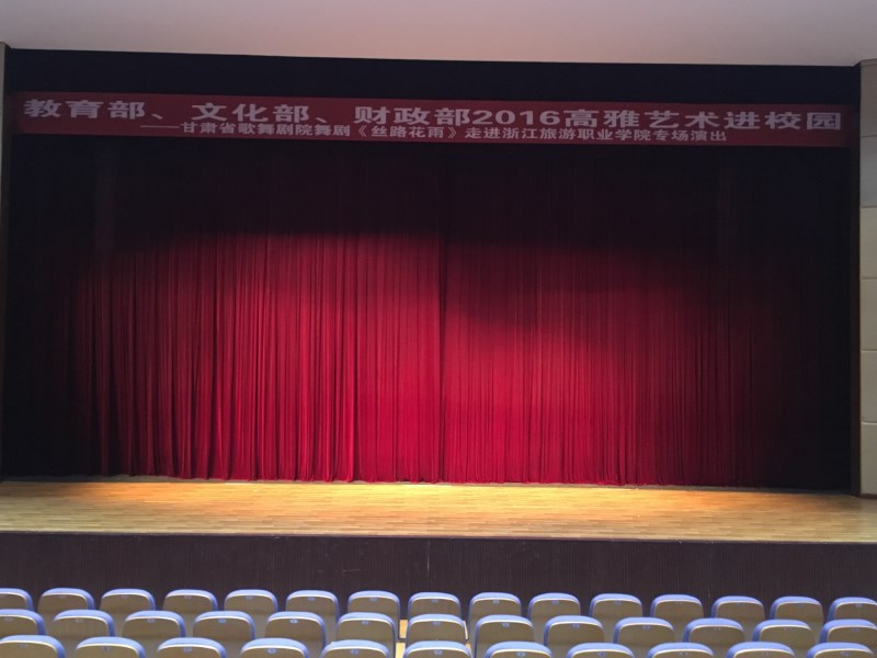 距杭州電子科技大學(xué)驚艷一舞僅僅24小時間隔,甘肅省歌舞劇院絲路題材世紀(jì)經(jīng)典舞劇《絲路花雨》又于11月23日晚7點在浙江旅游職業(yè)學(xué)院傾情上演,在收獲現(xiàn)場千余名師生發(fā)自內(nèi)心深深贊嘆的同時,再次為國家文化部、財政部和教育部隆重主辦的“2016高雅藝術(shù)進校園”杭州站高校巡演添上了濃墨重彩的華美一筆。