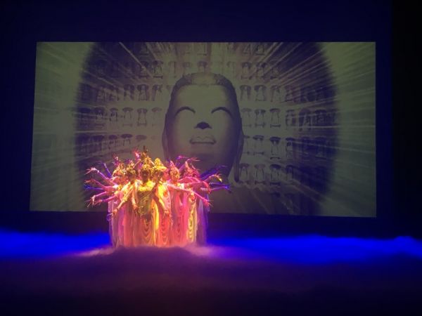 憑借37年來以璀璨敦煌壁畫藝術(shù)為核心舞蹈語匯、從而高度頌揚絲路精神與積極傳播和平友好國際主題所積淀的強大品牌影響力,《絲路花雨》在浙江旅游職業(yè)學(xué)院的演出情形與其他高校一樣,早在該劇還遠在福建演出時,校園各處花樣繁新的宣傳海報便比比皆是,匯成了一道十分亮麗的風(fēng)景線,而廣大師生彼此間提及最多的也是關(guān)于這部神往已久的世紀(jì)經(jīng)典舞劇的話題,一時間,《絲路花雨》如同一道美麗的神秘之光,縈繞校園每一空間。而至在該校演出日子終于來臨、演出真正開始那一刻起,廣大師生的一顆沸騰之心才終于慢慢暫時歸于平靜,以絕對敬仰之態(tài)細細欣賞與品味這一將悠遠歷史與絲路故事做出無比震撼還原的藝術(shù)巨制,以致花語紛飛大幕閉合時,眾多學(xué)子依然黯然靜坐,久久不愿離去,似乎自身已然穿越時空成為劇中人。此番情形,無疑是對《絲路花雨》該場演出最崇高的認(rèn)可。
